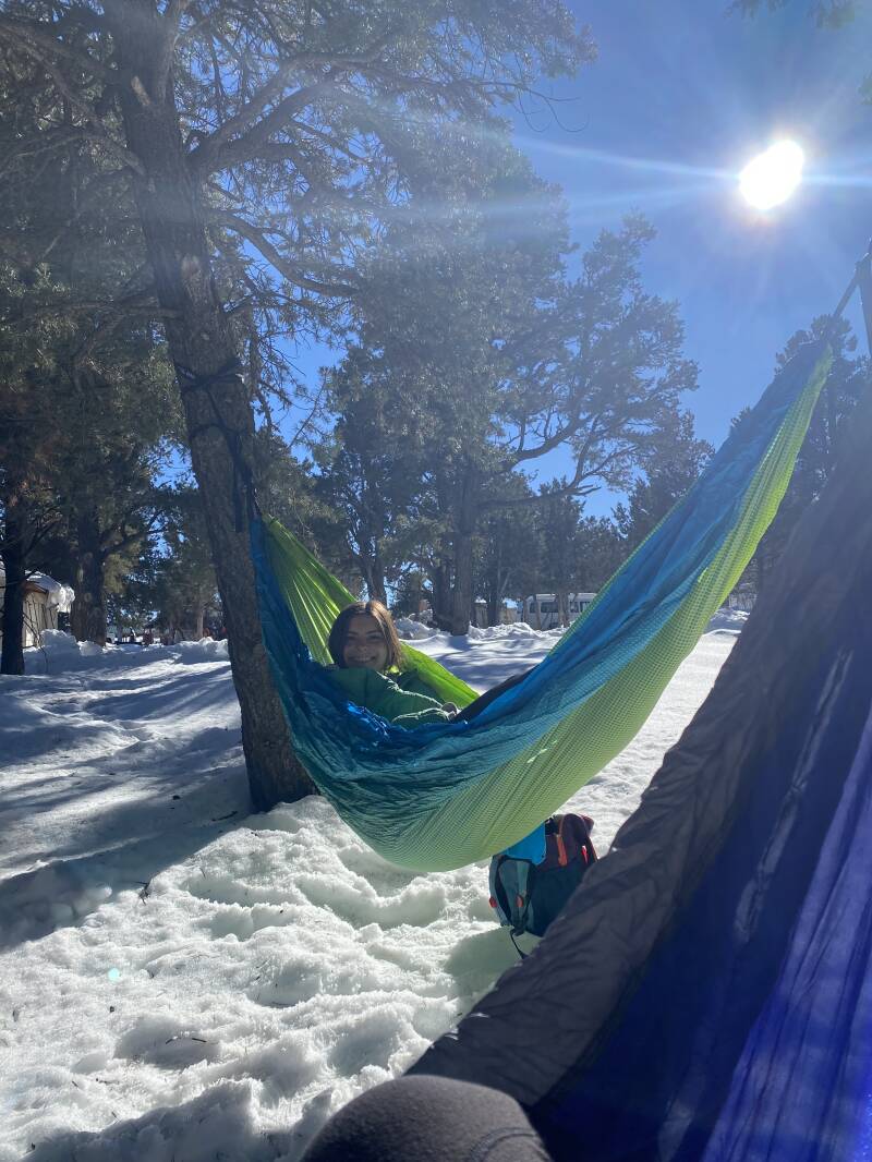 We were greeted at our pickup by our two managers blasting Driver's License by Olivia Rodrigo (you may think this was just because they assumed this was the music we liked, but no, this was the music of their choice). We crammed all our stuff into their car and drove the final 1.5 hours to Zion Ponderosa. We stopped at a side of the road coffee hut and then drove through the park before pulling up to the snow filled village that would be our new home, and met the goats that are going to be our new pets.